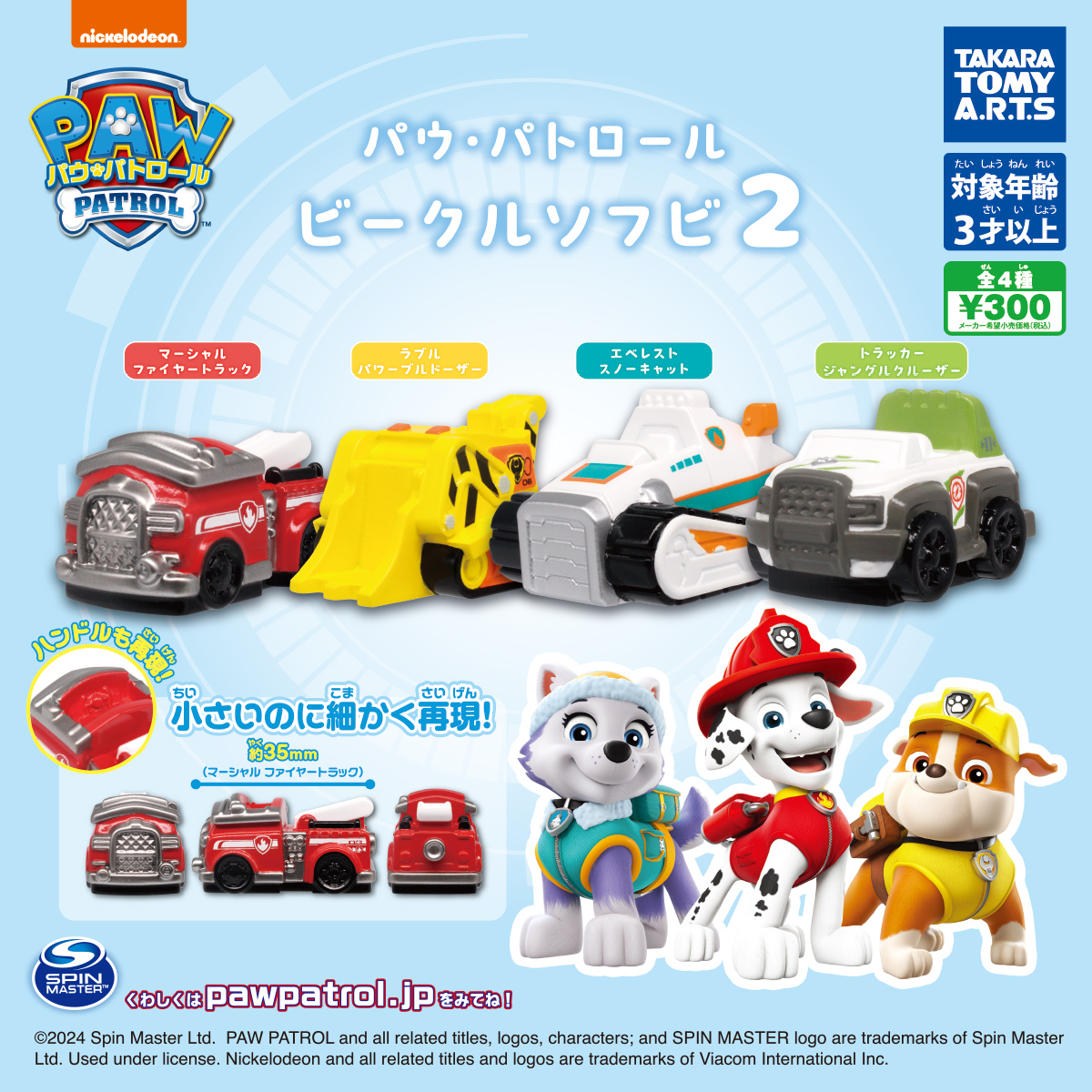「パウ・パトロール ビークルソフビ」の第2弾が全国のカプセルトイ売り場から発売されます。