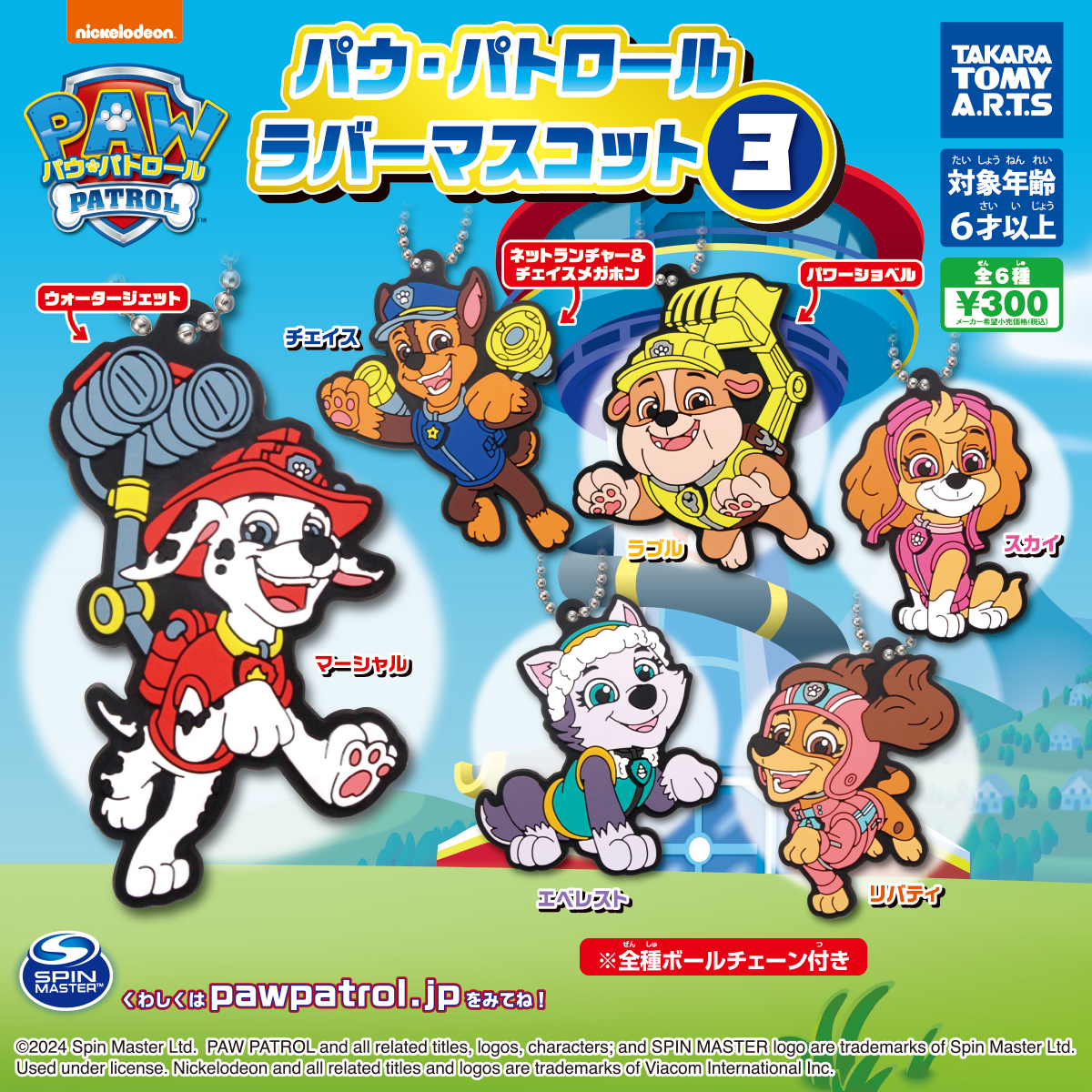「パウ・パトロール ラバーマスコット」の第3弾が全国のカプセルトイ売り場から発売されます。