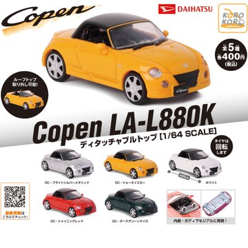 「DAIHATSU Copen」より1/64SCALEミニカーが全国のカプセルトイ売り場から再発売されます。