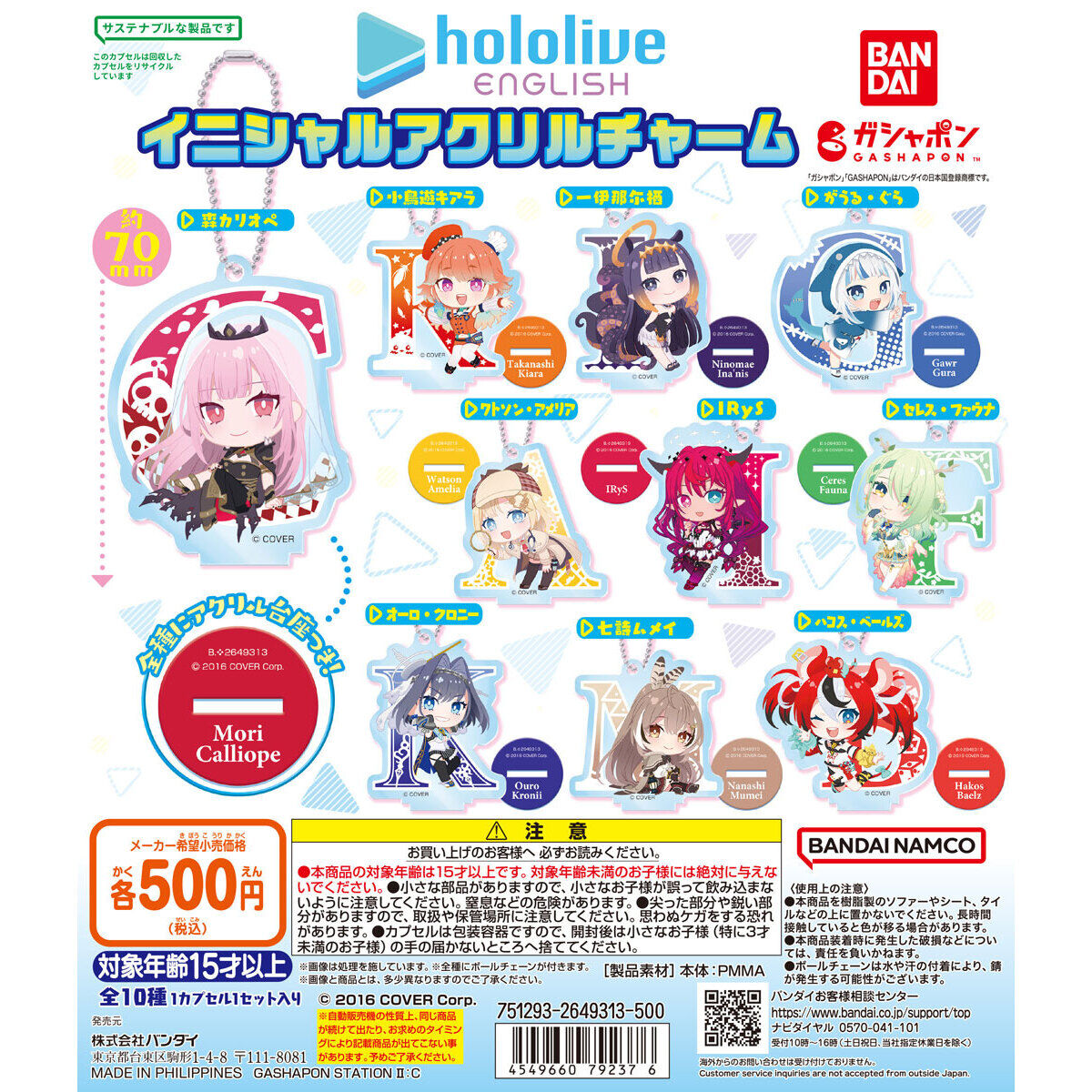 バンダイ「ホロライブEnglish イニシャルアクリルチャーム」