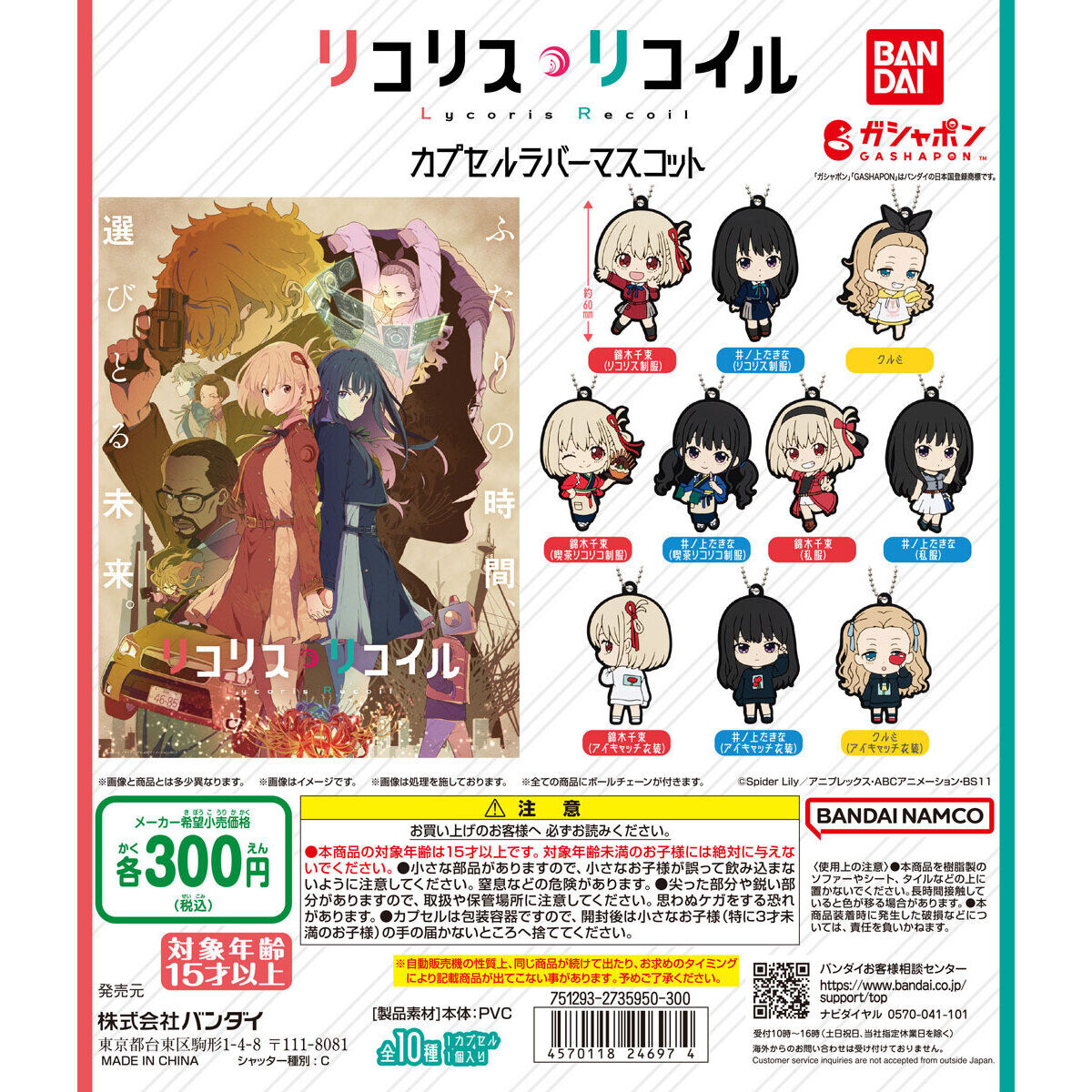 「リコリス・リコイル」よりカプセルラバーマスコットが全国のカプセルトイ売り場から発売されます。