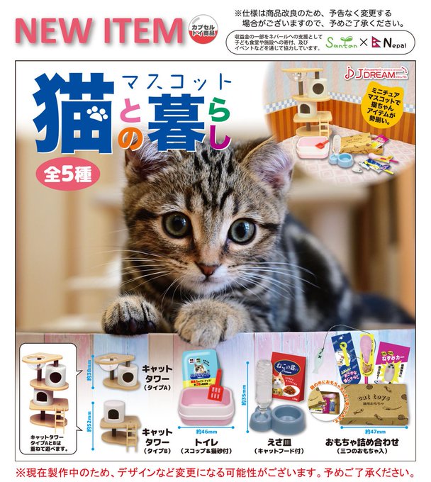 【ガチャ24年10月発売】猫との暮らしマスコット【Jドリーム】 【ガチャ25年3月発売】アジアンインテリア雑貨 カラフルぞうさん【ベネリック】 2024.11.142025.03.28 【ガチャ25年6月発売】日本の至宝 仏像立体図録I 廻【海洋堂】 2025.03.012025.03.13 【ガチャ25年1月発売】ミニチュア刀剣コレクション11【Jドリーム】 2024.10.03 ミニチュア 2024.07.22 Jドリーム「猫との暮らしマスコット」 2024年10月発売商品のご紹介06🏡🐈⬛「猫との暮らしマスコット」🐈🐟猫ちゃんの暮らしのアイテムがミニチュアになりました!🐈キャットタワーは2種を重ねられます❣️トイレやえさ皿もリアルに再現🌟猫ちゃんを楽しませるオモチャはケースに収納できます♪#ガチャガチャ #カプセルトイ #Jドリーム pic.twitter.com/uh5YoPrIz2— Jドリーム -カプセルトイ- (@Jdream_k) June 26, 2024 「猫との暮らしマスコット」が全国のカプセルトイ売り場から発売されます。 猫ちゃんアイテムが勢ぞろい! 商品名 猫との暮らしマスコット メーカーJドリーム 発売時期 2024年10月価格¥400内容(全5種)キャットタワー(タイプA)キャットタワー(タイムB)トイレ(スコップ&猫砂付)えさ皿(キャットフード付)おもちゃ詰め合わせ(三つのおもちゃ入り)JANコード4571596296543 楽天市場で探す Yahoo!ショッピングで探す Amazonで探す