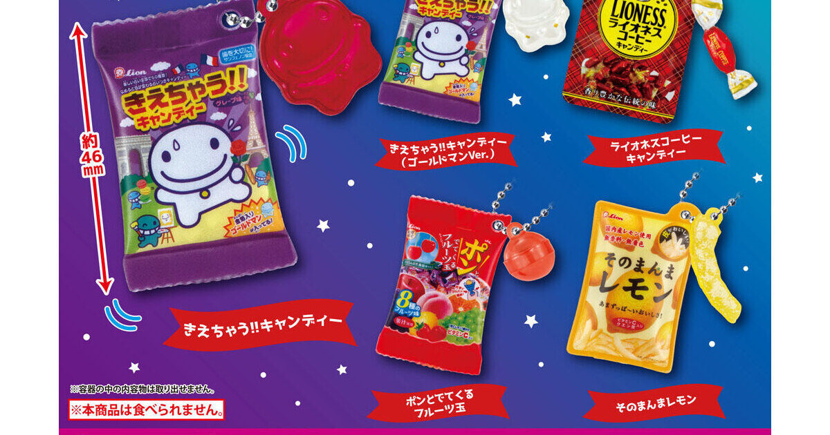 | 内容 (全5種) | きえちゃう!!キャンディー きえちゃう!!キャンディー(ゴールドマンVer.) ライオネスコーヒーキャンディー ポンとでてくるフルーツ玉 そのまんまレモン |