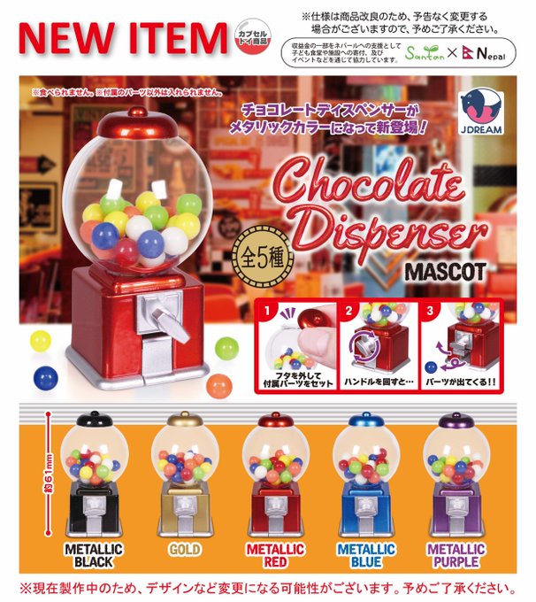 「チョコレートディスペンサーマスコット」の第3弾が全国のカプセルトイ売り場から発売されます。