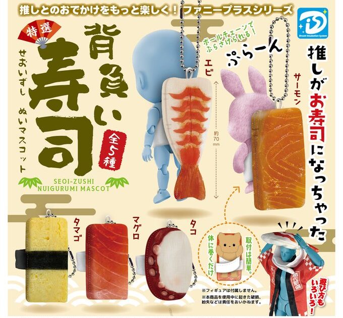 「背負い寿司ぬいマスコット」が全国のカプセルトイ売り場から再発売されます。