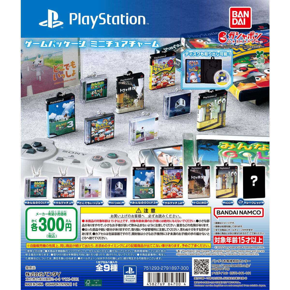 「ゲームパッケージミニチュアチャーム(Playstation)」が全国のカプセルトイ売り場から発売されます。