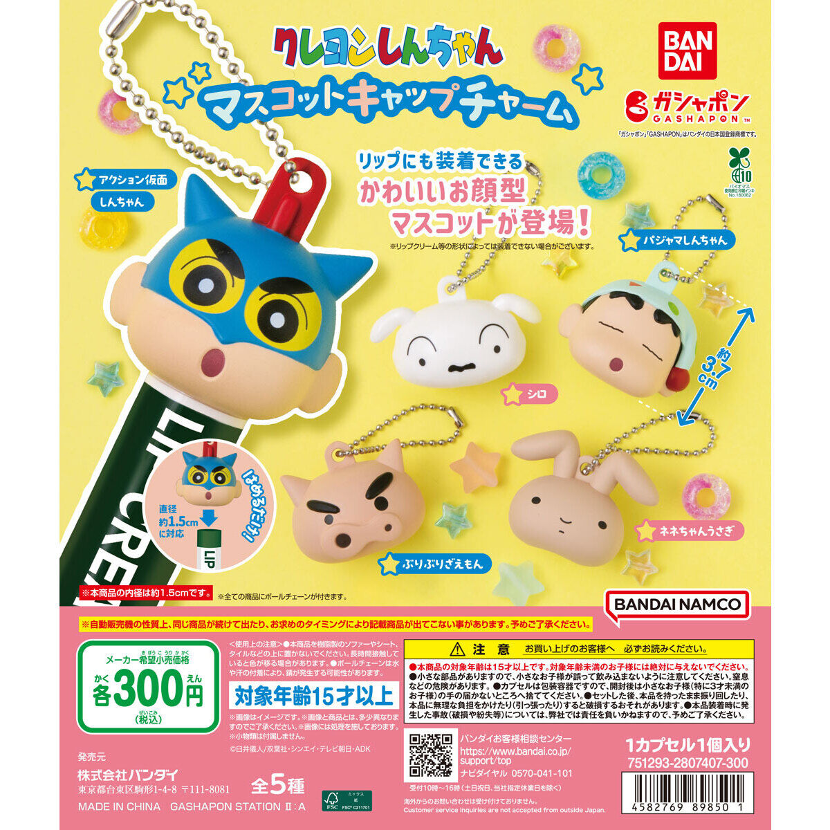 クレヨンしんちゃん」よりマスコットキャップチャームが全国のカプセルトイ売り場から発売されます。