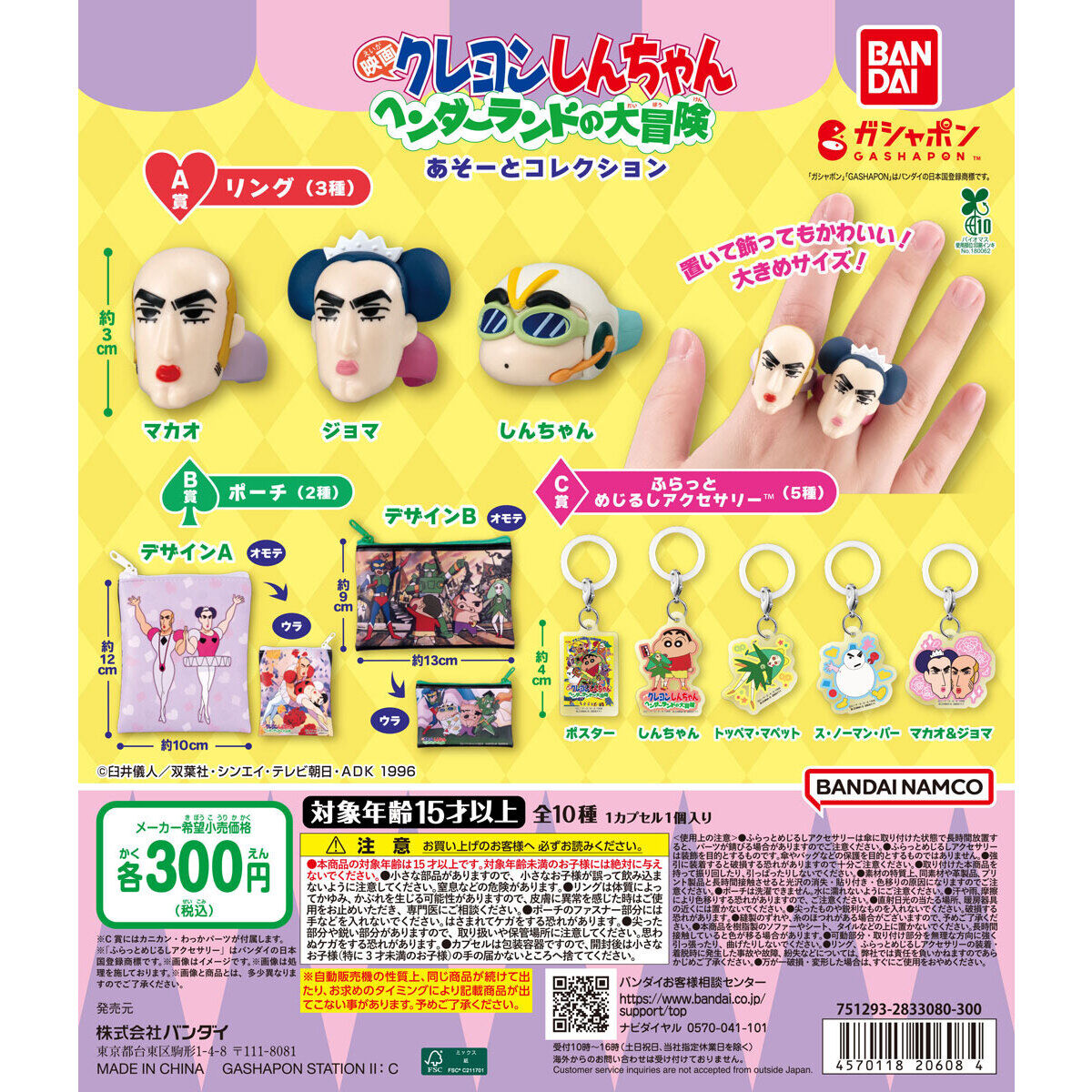 | 内容 (全10種) | リング マカオ リング ジョマ リング しんちゃん ポーチ デザインA ポーチ デザインB ふらっとめじるしアクセサリー ポスター ふらっとめじるしアクセサリー しんちゃん ふらっとめじるしアクセサリー トッペマ・マペット ふらっとめじるしアクセサリー ス・ノーマン・パー ふらっとめじるしアクセサリー マカオ&ジョマ |