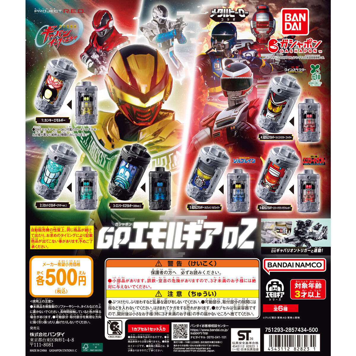 ガシャポン版「エモルギア」第2弾!ギャバン インフィニティが使用するエモルギアや、歴代メタルヒーローとのコラボエモルギアもラインナップ。別売りのDXギャバリオントリガーと連動!エモルギアごとに異なる音声や発光が楽しめる!