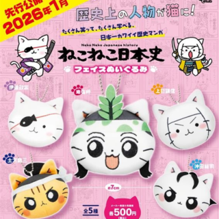 ピーナッツクラブ「ねこねこ日本史 フェイスぬいぐるみ」 \\先行公開//2026年1月発売予定商品「#ねこねこ日本史 フェイスぬいぐるみ」がカプセルトイの商品で新登場です✨伊達政宗や卑弥呼など、人気キャラが勢ぞろい😸全5種◒1回500円※開...